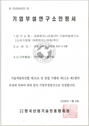 기업부설연구소 인정서[2008-01-09]