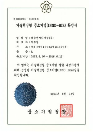 이전글 다음글 목록 본문 기술혁신형 중소기업(INNO-BIZ)확인서 기술혁신형 중소기업(INNO-BIZ)확인서[2013-06-13] 댓글목록 등록된 댓글이 없습니다. 이전글 다음글 목록